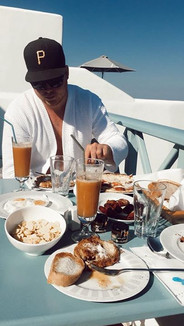 We walk down to our suite and I'm blown away. Absolute Bliss Imerovigli Suites is the most breathtaking hotel I've every seen! Private balcony and hot tub, private pool for the hotel, room service that will make or buy you ANYTHING and bring to your room at ANY hour, yummy breakfast delivered at your desired time, and the view.....